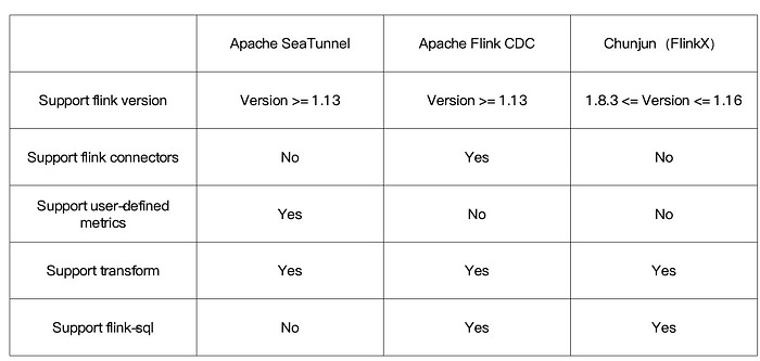 Flink-SQL: Although SeaTunnel does not currently support Flink-SQL, it is one of the community’s future focuses.